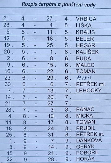 Rozpis služby na pouštění užitkové vody v tomto roce 2025.